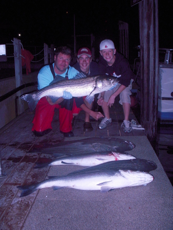 One day last summer, one of my best clients, John Clancy, brought his family for an afternoon trip. I’d heard the fishing off Monomoy, over by Chatham, was really hot, so we shot across 25 miles of water to get there only to find a slack tide. I put the kids ashore to blow off some steam til the tide came around, and by 5:00 pm the tide had turned and these patent angler’s were doubling up every pass with 40 inch trophy sized striped bass.